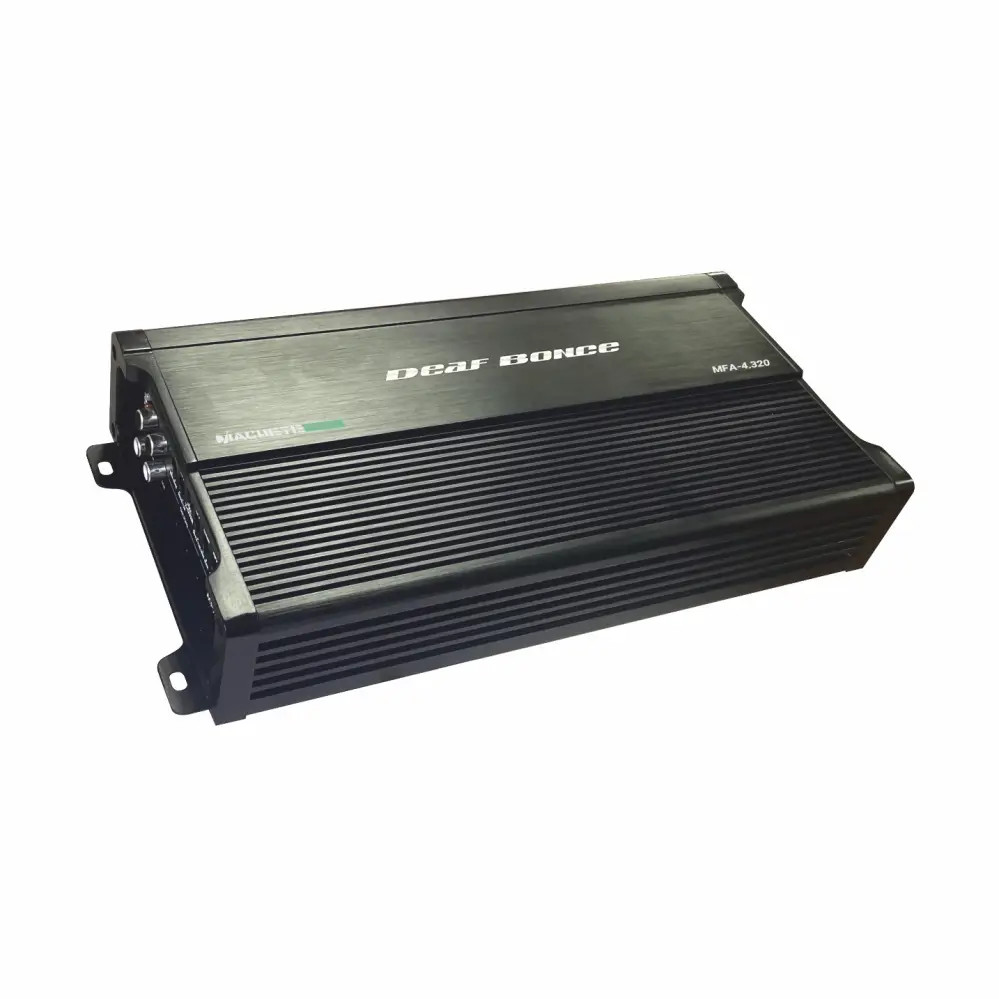 Le Deaf Bonce Machete MFA-2.320 est un amplificateur 2 canaux Class D haute performance conçu pour alimenter des haut-parleurs ou un subwoofer en mode pont. Avec sa puissance de 320W RMS par canal @ 4Ω (ou 960W RMS en mode pont), il offre une polyvalence maximale. Sa large bande passante de 20Hz à 20kHz et ses filtres actifs complets permettent une intégration optimale dans tous types de systèmes audio.