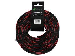 Gaine de protection en nylon 4 Connect rouge-noir 12/25mm 10m Gaine de protection en nylon de haute qualité et durable pour protéger et décorer les câbles. Diamètre 12 mm, extensible jusqu'à 20 mm, convient pour câble 8-20 mm (16-50 mm²). Température maximale continue 125 degrés Celsius, température de fusion 250 degrés Celsius.